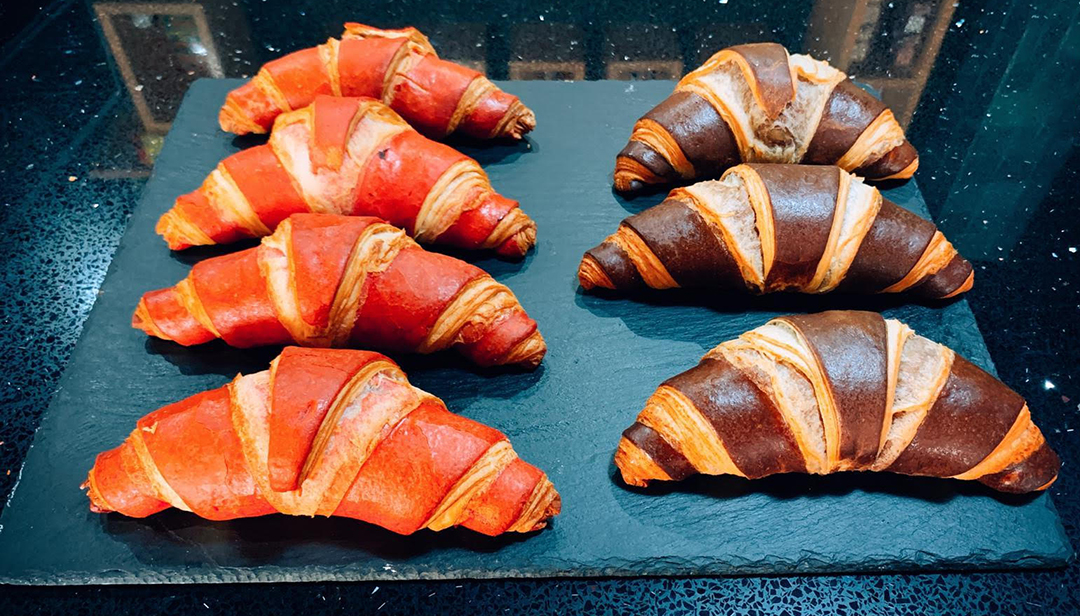 Mantequilla, tomate, aceite, paté ibérico, crema de york y queso, paté de atún, zurrapa roja y blanca, sobrasada, crema de pavo, cachuela.